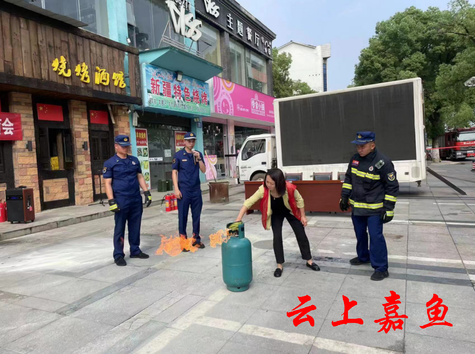 活动中,嘉鱼县消防救援大队消防指战员现场演示了如何扑救厨房油锅起火和液化气罐起火,面对面讲解了如何使用灭火器和消防水枪,社区群众热情参与,熟练掌握灭火器的使用方法。