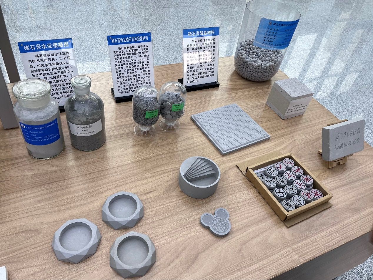 三峡实验室展示的磷石膏综合利用相关产品。澎湃新闻记者 谈婧媛 摄