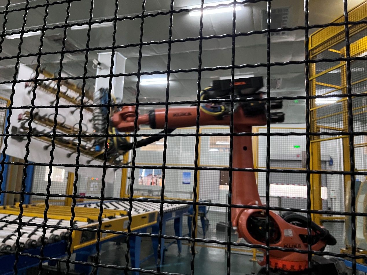 宜昌光电的生产车间内,机械手正在堆垛玻璃。澎湃新闻记者 谈婧媛 摄