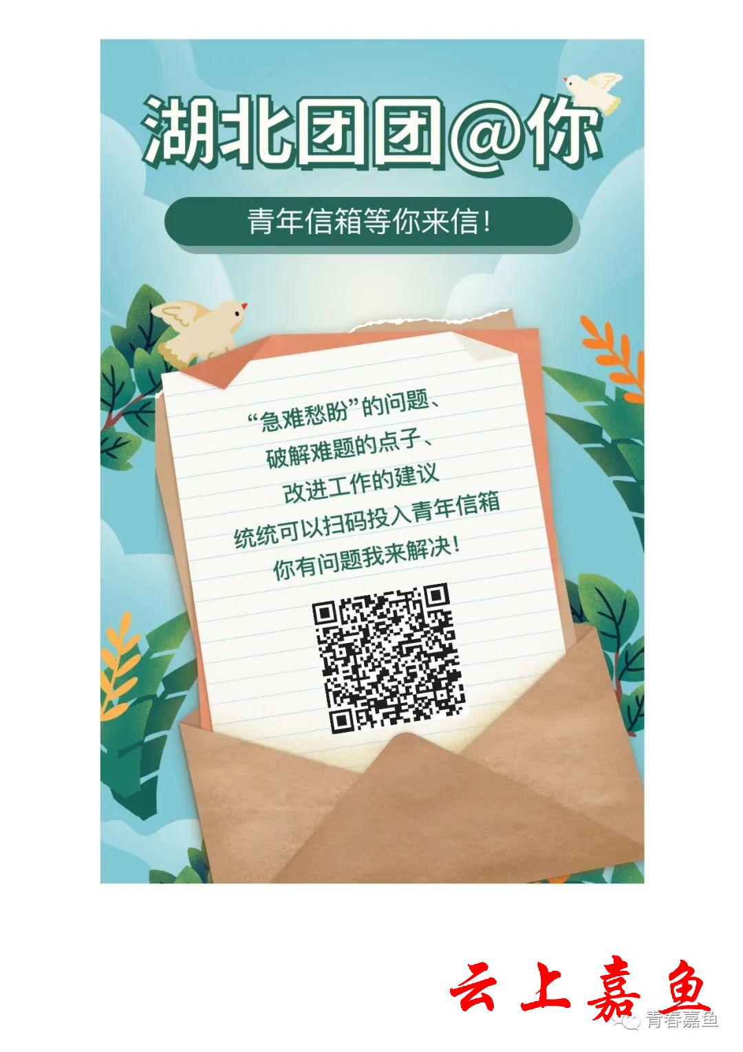 结合湖北共青团下基层察民情解民忧暖民心实践活动和“三联五助”行动,“青春嘉鱼”特别开设了“青年信箱”专区,征集青年建议、倾听青年声音、回应青年诉求帮助解决青年“急难愁盼”问题。有什么问题、困难或者解决建议、方案,统统都可以投递到“青年信箱”。