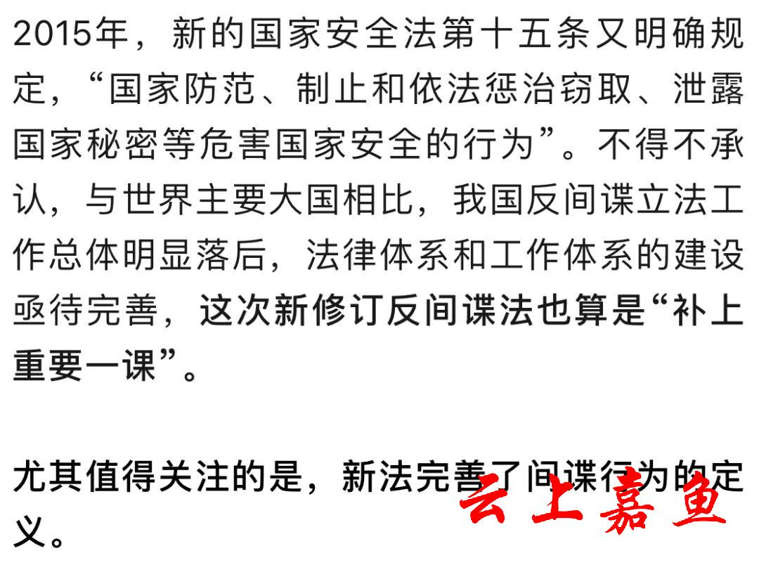 新法完善了间谍行为的定义