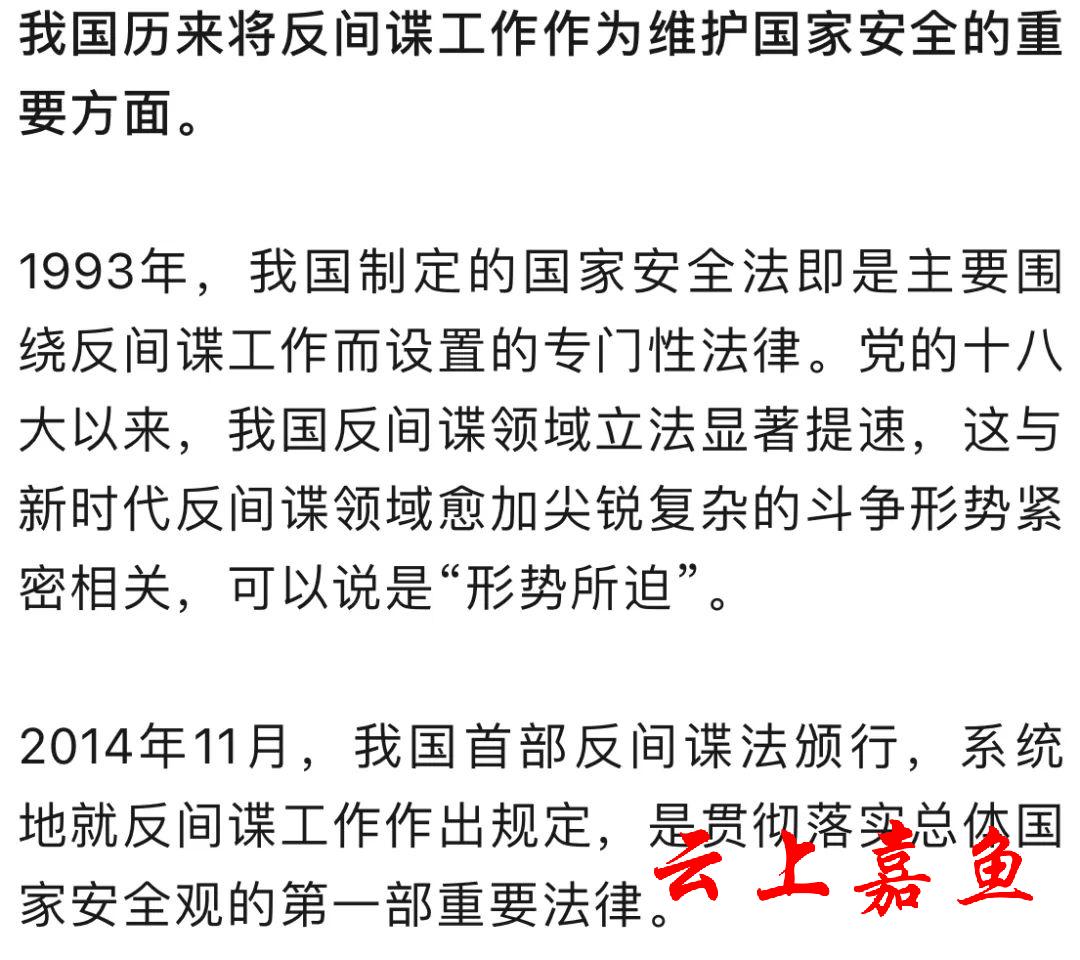 7月1日,新修订的《中华人民共和国反间谍法》正式施行。