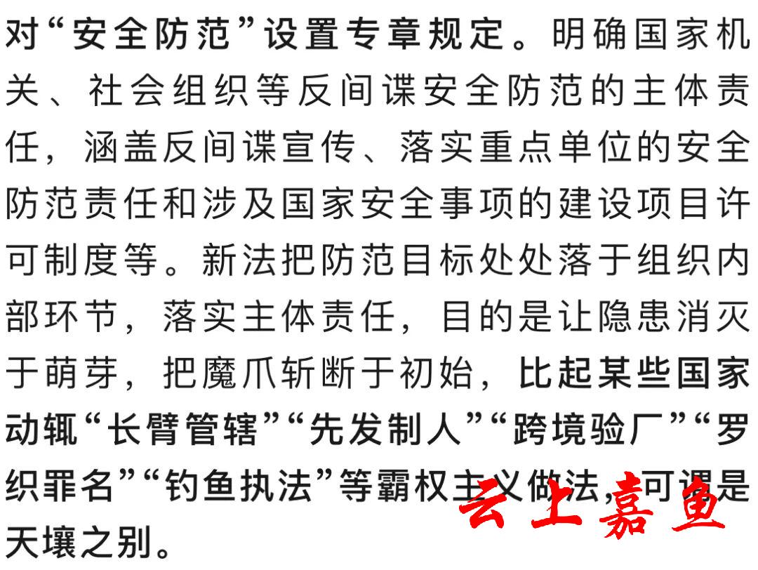 同时新法也正告那些挂羊头卖狗肉、妄图蒙混过关危害我国家安全的势力,“手莫伸,伸手必被捉”。