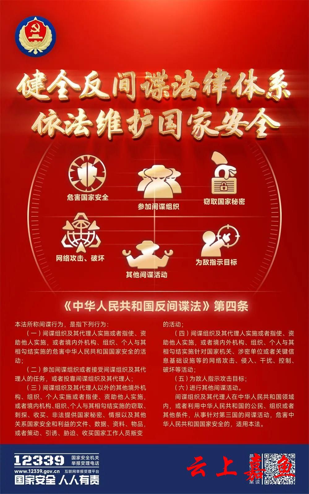 令人可喜的是,广大人民群众的反间谍意识大为提高,12339成为人所熟知的“抓间谍”专线,受到表彰奖励的“平民英雄”越来越多,国家安全人民防线更加巩固。这些工作成果,离不开反间谍领域法治建设的不断进步。