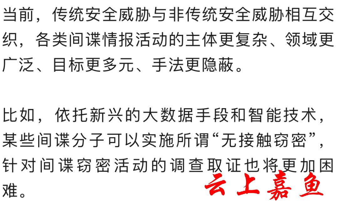 可以预见,新修订的反间谍法是一次重要的查缺补漏,以立法形式推进解决了当前反间谍工作中许多亟需破解的现实问题,使得国家安全得到更加有力的法治保障,意义重大。
