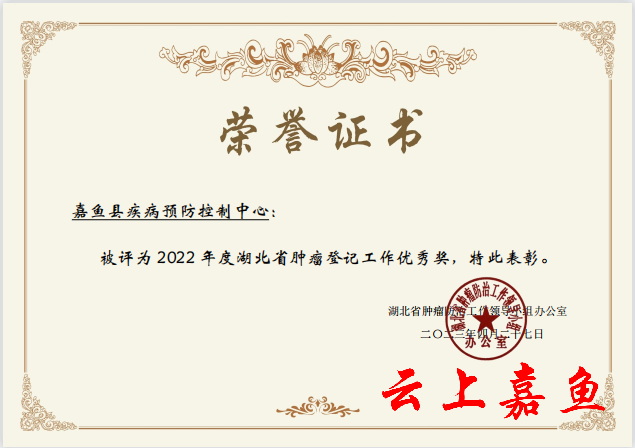 “我们以科学认真的态度开展肿瘤监测工作,能为人类早日突破癌症防治‘瓶颈’作出一份贡献,是我们的光荣!”嘉鱼县疾控中心慢病科负责人表示。由于工作业绩突出,该中心2019-2022年连续四年获得湖北省年度“肿瘤随访登记项目先进集体”荣誉称号。