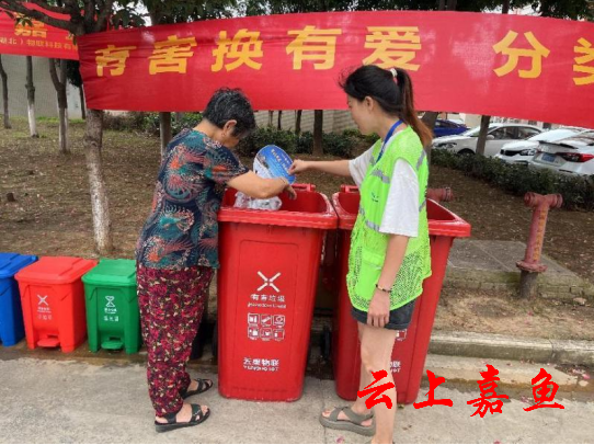 云上嘉鱼报道(通讯员廖欣语)为加快推进嘉鱼县生活垃圾分类工作,培养社区居民养成定点、精准分类的好习惯,7月4日下午,县环卫局工作人员联合云果(嘉鱼)物联公司前往高地嘉境小区开展垃圾分类主题宣传活动。