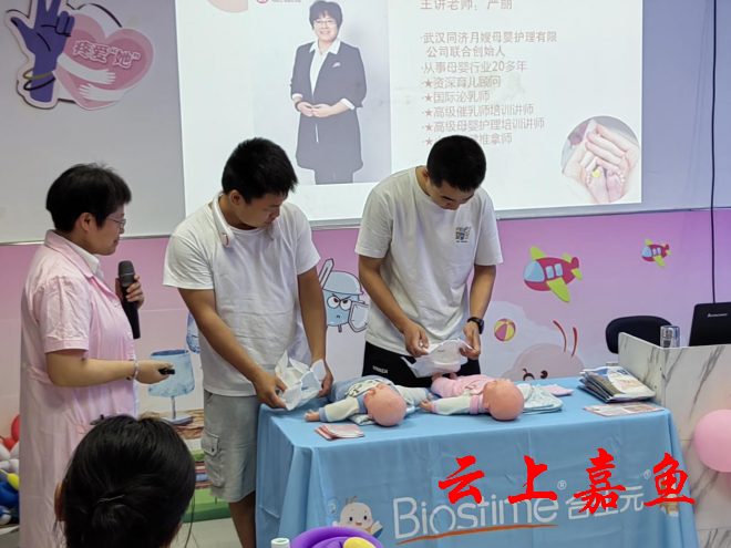 讲座中,武汉同济月嫂母婴护理有限公司联合创始人、资深育儿顾问严丽以“科学坐月子”为主题,围绕产前准备、待产包准备、新生儿病房护理、产妇病房护理等内容向在座的准爸准妈及其家属们进行了讲解,认真回答准妈妈们提出的各种问题,并手把手教准爸准妈们如何正确给新生儿换尿不湿。