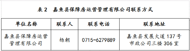 (二)申请资料由申请人现场递交给嘉鱼县保障房运营管理有限公司,办公地址及联系方式如表所示,申请日期:2023年7月26日。