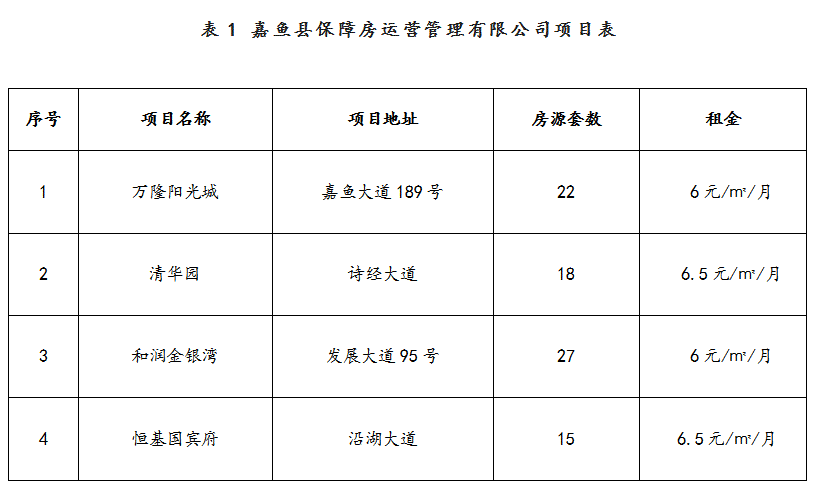 本次配租的只租不售型保障性租赁住房(以下简称保租房)房源共82套,分布在4个小区。所有房源由县城发集团旗下的子公司嘉鱼县保障房运营管理有限公司配租。