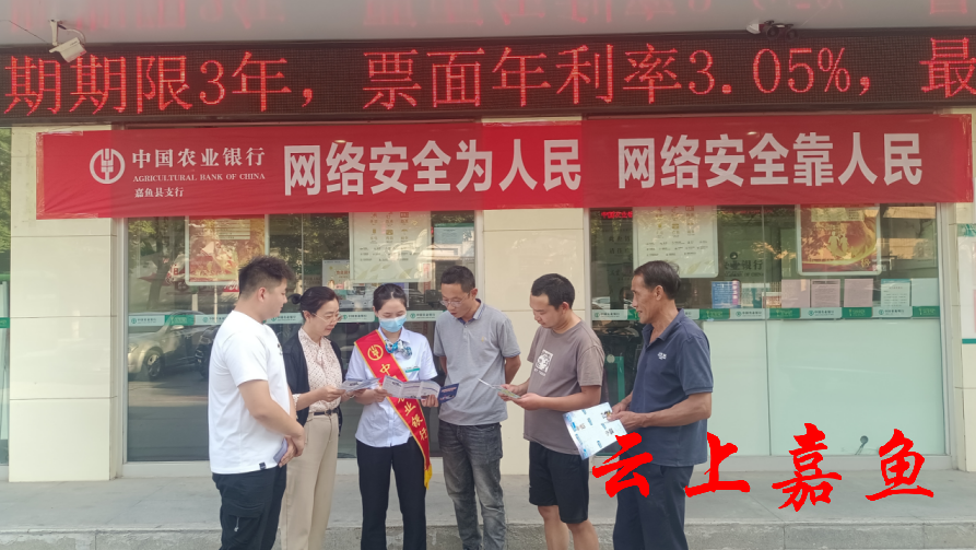 云上嘉鱼报道(通讯员程黎明 )为进一步增强全社会的国家网络安全意识,大力营造和谐文明健康的网络空间环境,9月15日,农行嘉鱼县支行在辖内网点开展“网络安全为人民 网络安全靠人民”国家网络安全宣传周活动。
