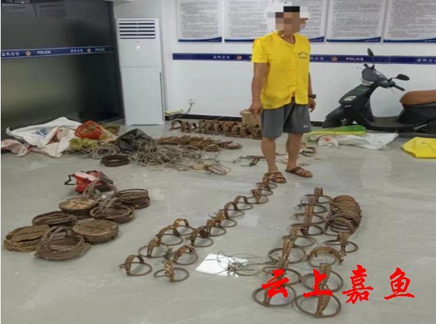 “你是不是叫王明(化名)?我们是公安局的,有事情想找你了解一下,能坐下谈谈吗?”民警王众根据指令在嫌疑人王明家门口找到他,面对民警的询问,王明眼神闪烁回答支吾,却不愿意让民警进屋。民警马上意识到他家里可能有问题,在佯装进屋喝水时,发现嫌疑人家中楼梯、柴房摆放了大量的捕兽夹!面对民警的质问,自知事情败露的王某如实交代了非法狩猎的事实。这样的场景同一时刻在各个抓捕点不断上演……