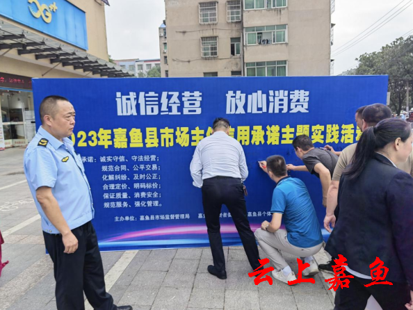 云上嘉鱼报道(全媒体记者熊熙)为倡导各类市场主体自觉遵守信用承诺,提高市场主体诚信经营意识,营造安全放心的消费环境,9月28日,县市场监督管理局、县消费者委员会、县个体劳动者私营企业协会联合举办以“诚信经营 放心消费”为主题的市场主体信用承诺主题实践活动。