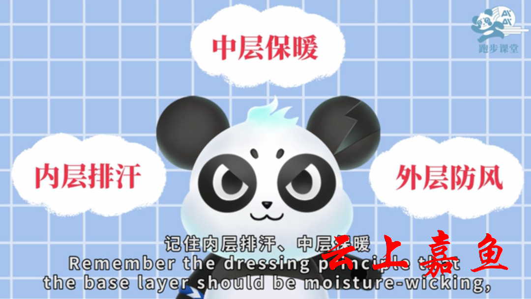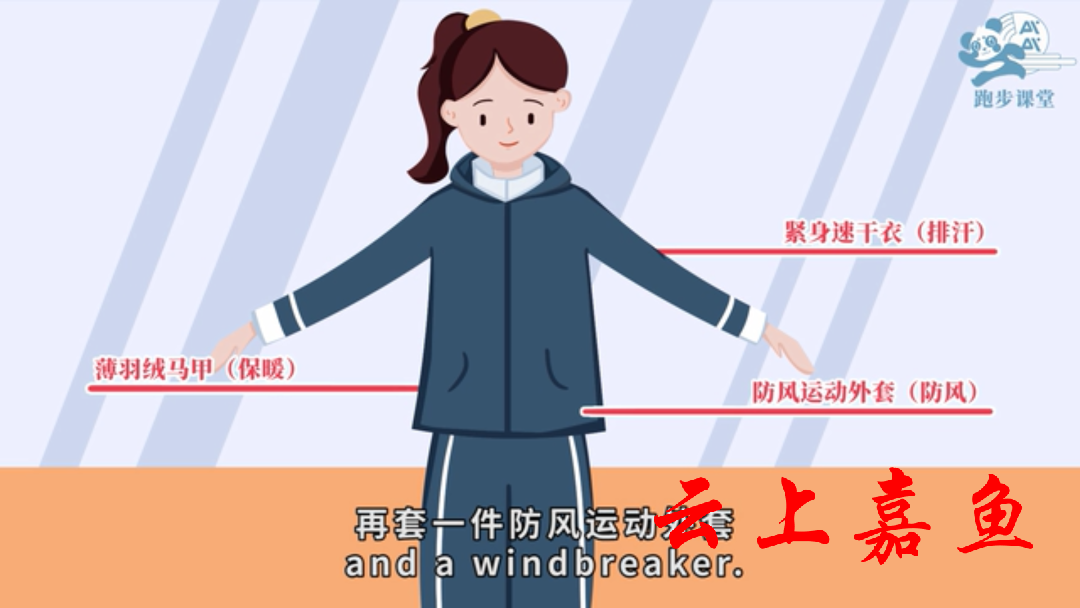 1.冬季户外跑步中的服装要兼顾排汗、保暖和防风防雨,常见穿衣方法为分3层:贴身层、中间层、最外层。