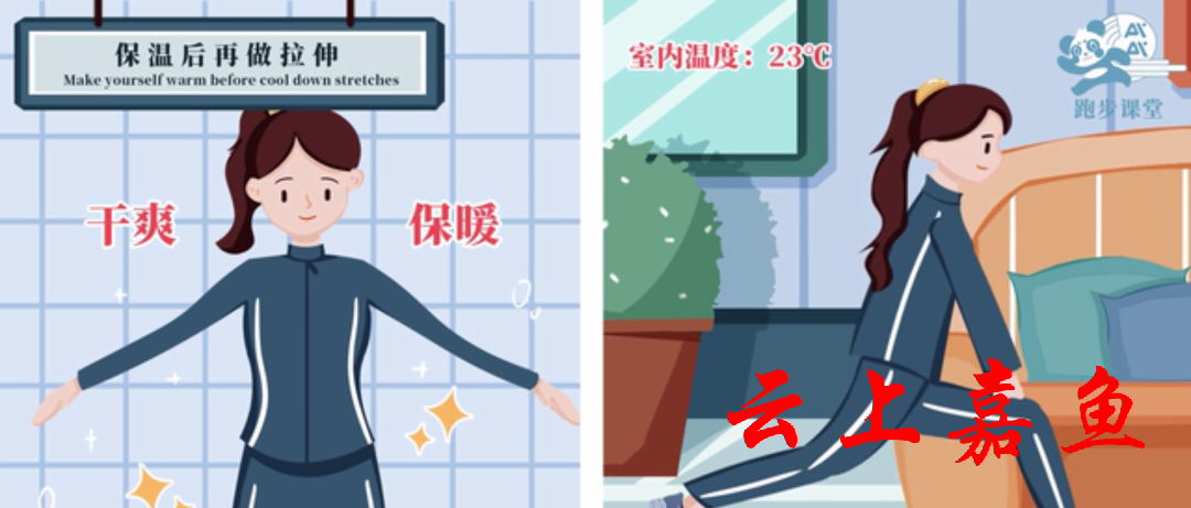 冬跑穿太厚会影响跑步状态,但若不穿那么多直接出去跑又很容易着凉。因此,建议跑步前在室内充分进行15-20分钟的热身运动,如拉伸、原地跑等。此外,在室内进行一些核心力量的训练也会让跑步过程更加安全稳健,比如可以做平板支撑、仰卧起坐、俯卧撑等热身项目。等到体温有所提高之后,再穿着合适的衣物出去跑步。