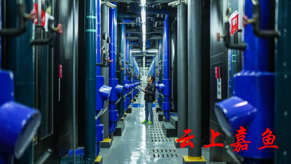 工作人员在中国联通贵安数据中心对微模块机房运行状态进行巡检(2023年5月23日摄)。近年来,国家“东数西算”工程全面启动,贵州是全国八个一体化算力网络国家枢纽节点之一。新华社记者 陶亮 摄