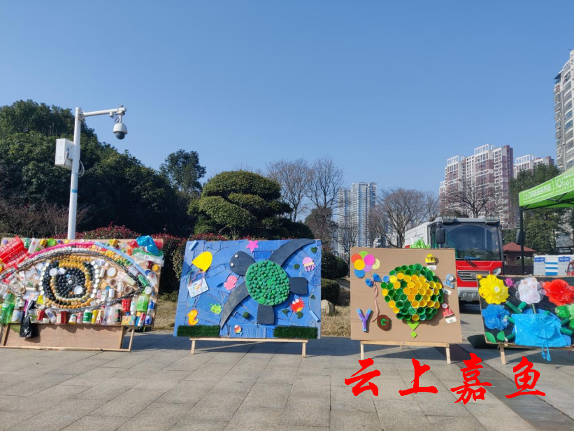 嘉鱼县全县生活垃圾智能分类服务商、云果物联公司总经理汪浩介绍:“我们以可回收物作为创作素材,表达循环再生理念,希望通过这些创意独特的作品,将‘分类新时尚,减法新生活’的环保理念融入市民生活,提升市民环保意识,进一步助力垃圾减量化资源化。”