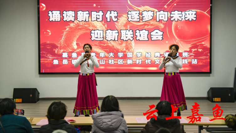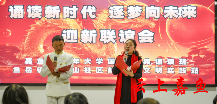 云上嘉鱼报道(全媒体记者雷平 通讯员赵宇峰)12月30日,嘉鱼县老年大学国学经典诵读班与鱼岳镇梁家山社区新时代文明实践站共同举办“诵读新时代 逐梦向未来”元旦迎新联谊会,旨在庆祝元旦佳节,弘扬中华优秀传统文化,增进辖区居民之间的友谊。