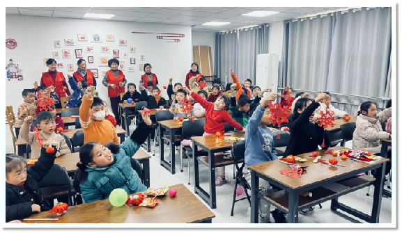 鱼岳镇东街社区新时代文明实践站联合社区妇联、社区“零点学堂”共同举办了“童心童趣迎元旦”手工制作活动。社区志愿者老师通过互动问答的方式向孩子们讲解了元旦的由来、发展、传说和习俗以及剪纸、手工制作小灯笼的意义、运行原理等方面的知识。孩子们自由联想、尽情发挥,制作出一个个充满创意、独具特色的吉祥如意“福”字、中国结、可爱小灯笼等作品。活动让孩子们领略了中国民间传统艺术的魅力,也为元旦增添了喜庆祥和的节日气氛。