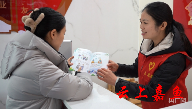 妻子陈随权耐心为市民讲解文明手册(央广网发 唐芳艳 供图)