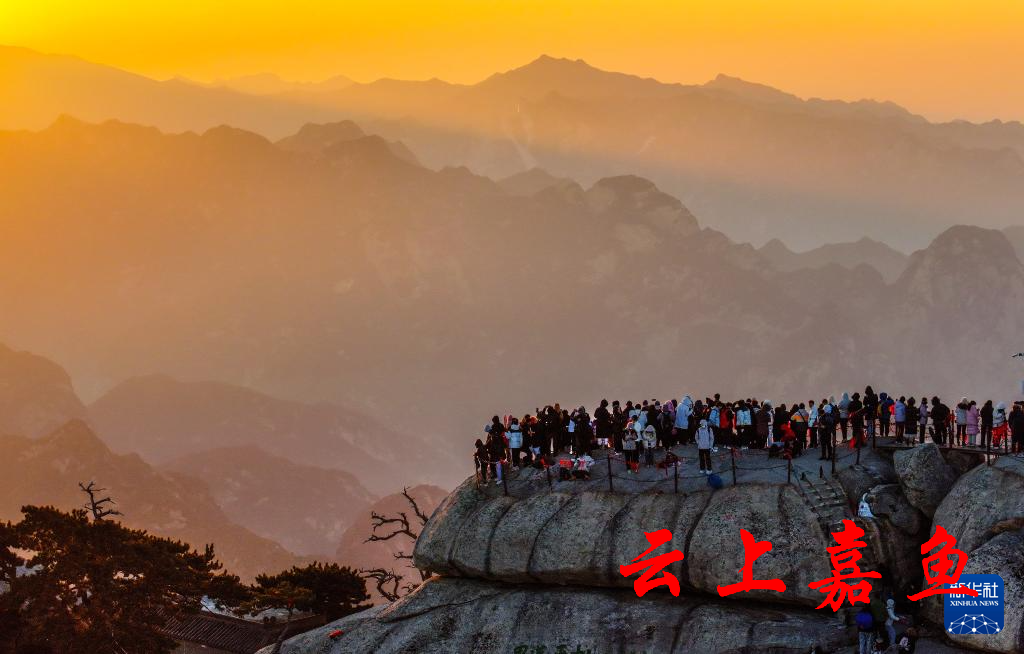 2023年12月31日,游客在位于陕西省渭南市的华山西峰赏景(无人机照片)。元旦假期期间,人们用各种方式乐享时光,迎接新年,欢度假期。新华社发(汪艳 摄)