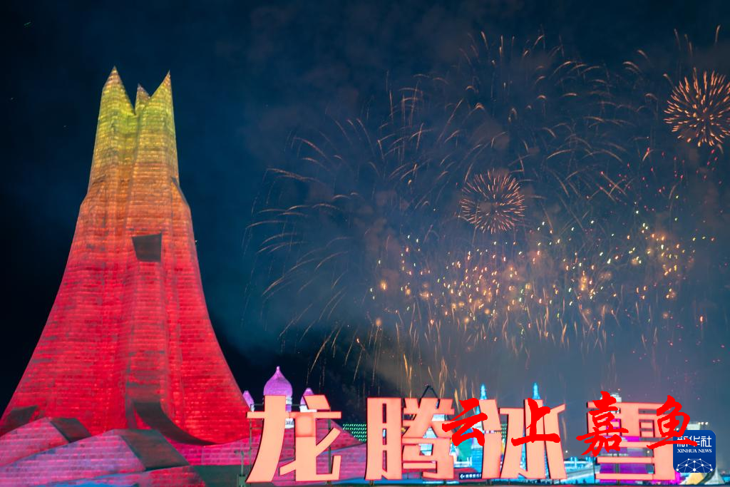 1月5日,冰雪节启幕焰火在哈尔滨冰雪大世界园区上空绽放。当日,第40届中国·哈尔滨国际冰雪节开幕,吸引众多游客。新华社记者 张涛 摄