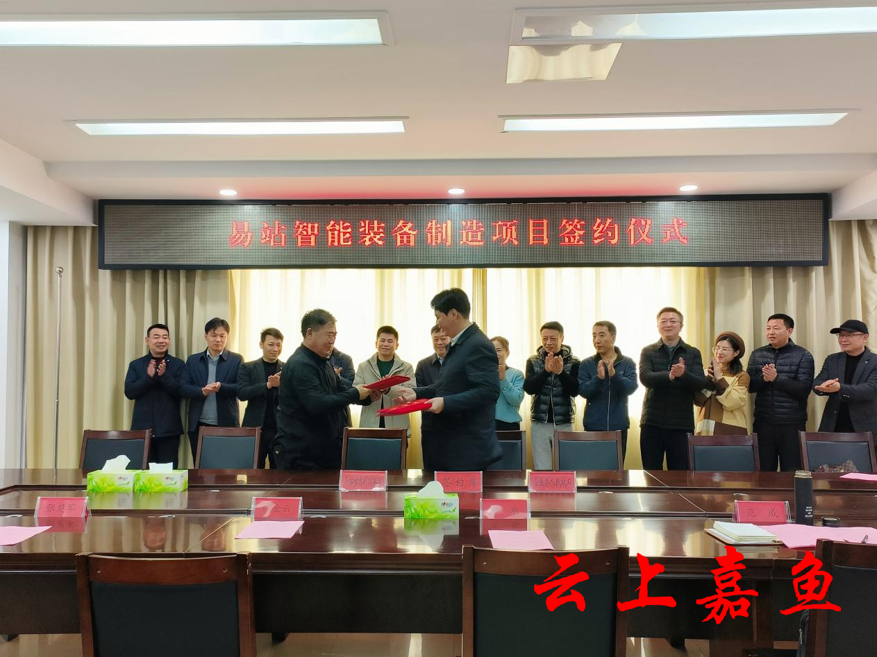 云上嘉鱼报道(全媒体记者雷佳敏)1月9日,嘉鱼县举行易站智能装备制造项目签约仪式。县委书记王永,易站集团控股董事局主席、易站绿色科技集团有限公司董事长李俊建出席签约仪式并致辞。县委副书记、县长胡金云,县委常委、副县长范威出席签约仪式。