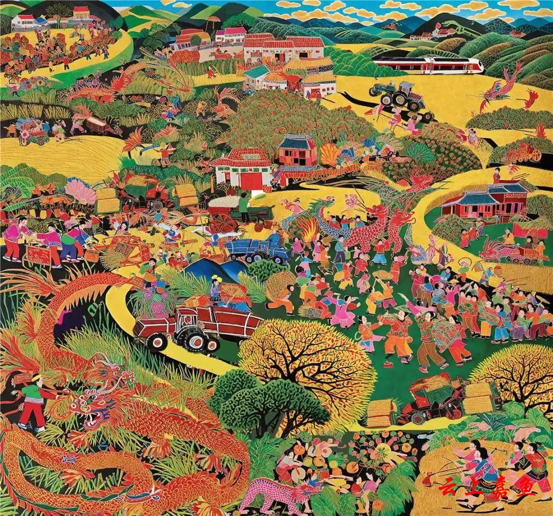 广大作者以木版年画、新年画、农民画以及具有年画元素的插画等多种艺术创作形式,描绘家乡的变化、丰收的喜悦和实现小康后的幸福生活,为生活上色,为幸福添彩,呈现出欣欣向荣的多彩画卷和奋发有为的精神风貌。甲辰龙年春节期间,为弘扬中华优秀传统文化,营造欢乐、祥和的节日氛围,恭贺新春佳节,此次 “新生活·新风尚·新年画”主题作品线上联展,精选来自全国各地的新年画作品,这些新年画色彩浓艳鲜明,手法精湛细腻,内容丰富,题材多样,兼具传统韵味与现代意义,为读者朋友们献上年味儿满满的文化盛宴和新春祝福。