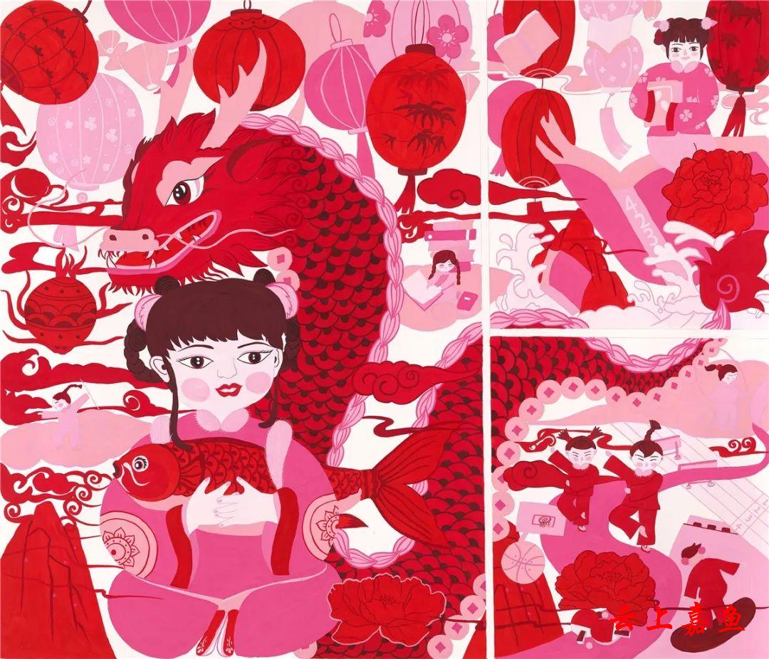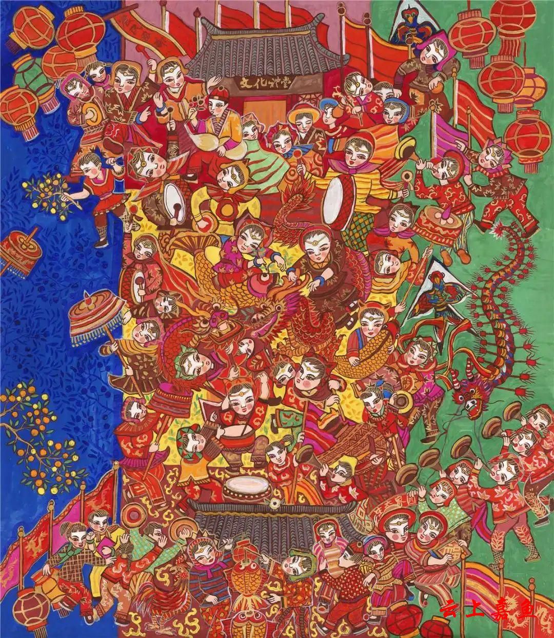 广大作者以木版年画、新年画、农民画以及具有年画元素的插画等多种艺术创作形式,描绘家乡的变化、丰收的喜悦和实现小康后的幸福生活,为生活上色,为幸福添彩,呈现出欣欣向荣的多彩画卷和奋发有为的精神风貌。甲辰龙年春节期间,为弘扬中华优秀传统文化,营造欢乐、祥和的节日氛围,恭贺新春佳节,此次 “新生活·新风尚·新年画”主题作品线上联展,精选来自全国各地的新年画作品,这些新年画色彩浓艳鲜明,手法精湛细腻,内容丰富,题材多样,兼具传统韵味与现代意义,为读者朋友们献上年味儿满满的文化盛宴和新春祝福。