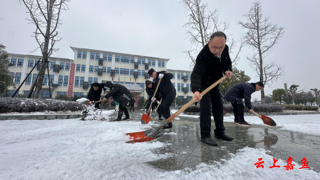 云上嘉鱼报道(通讯员梁宁)一夜降雪为整个镇区带来一片雪白,冻雨也为树枝换上了一身晶莹剔透的厚冰,为保障镇区内道路畅通安全,维护群众正常的生产生活,2月4日清晨,新街镇机关、各村(社区)及镇直部门志愿者,纷纷拿起工具进行除雪、挪树枝等清障活动。