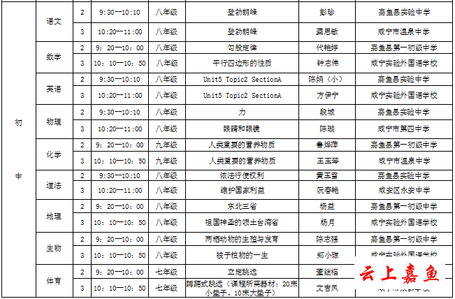 本次活动的送教老师来自咸宁市温泉城区8所公立学校,涵盖幼儿园、小学、初中三个学段,涉及语文、数学、英语、物理、化学、道德与法治、地理、生物、音乐、科学、体育等多个学科,为我县送来了15节示范课。我县茶庵幼儿园、实验小学、第一小学、第一小学茶庵校区、第一小学方庄校区、嘉鱼县第一初级中学、实验中学承办了相关学科送教教研活动。