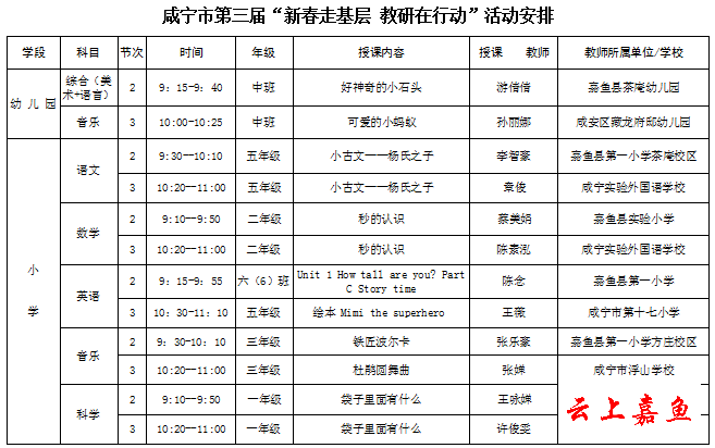 咸宁市第三届“新春走基层 教研在行动”活动
