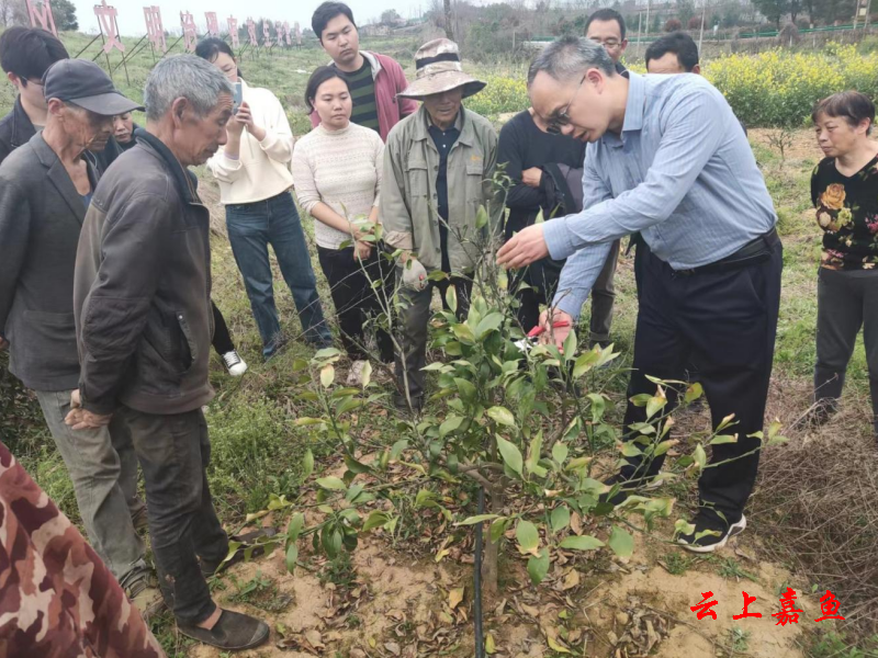 云上嘉鱼报道(通讯员雷家奇)为助力乡村产业振兴,3月22日,县科协邀请国家现代柑橘技术体系岗位科学家、华中农业大学教授刘永忠和副教授解凯东赴渡普镇王家庄村脐橙基地开展柑橘种植技术指导。