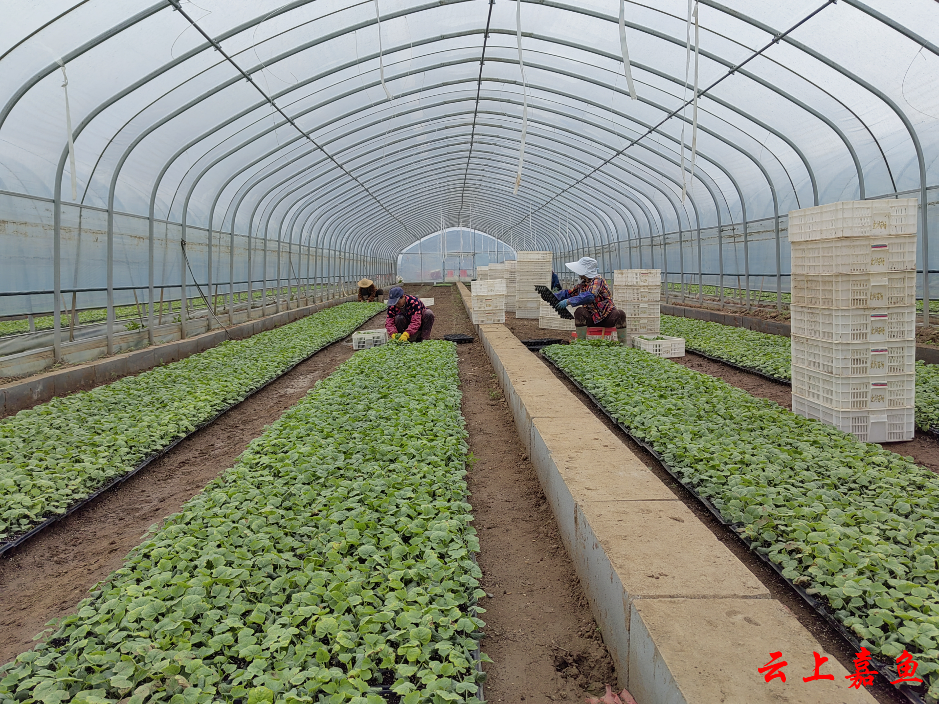 在位于潘家湾镇的湖北金润农业发展有限公司蔬菜集约化育苗基地里,工人正将育好的苗进行移栽。该基地已基本形成“两瓜两菜”(冬瓜、南瓜、大白菜、甘蓝)的复种模式。(熊熙 摄)