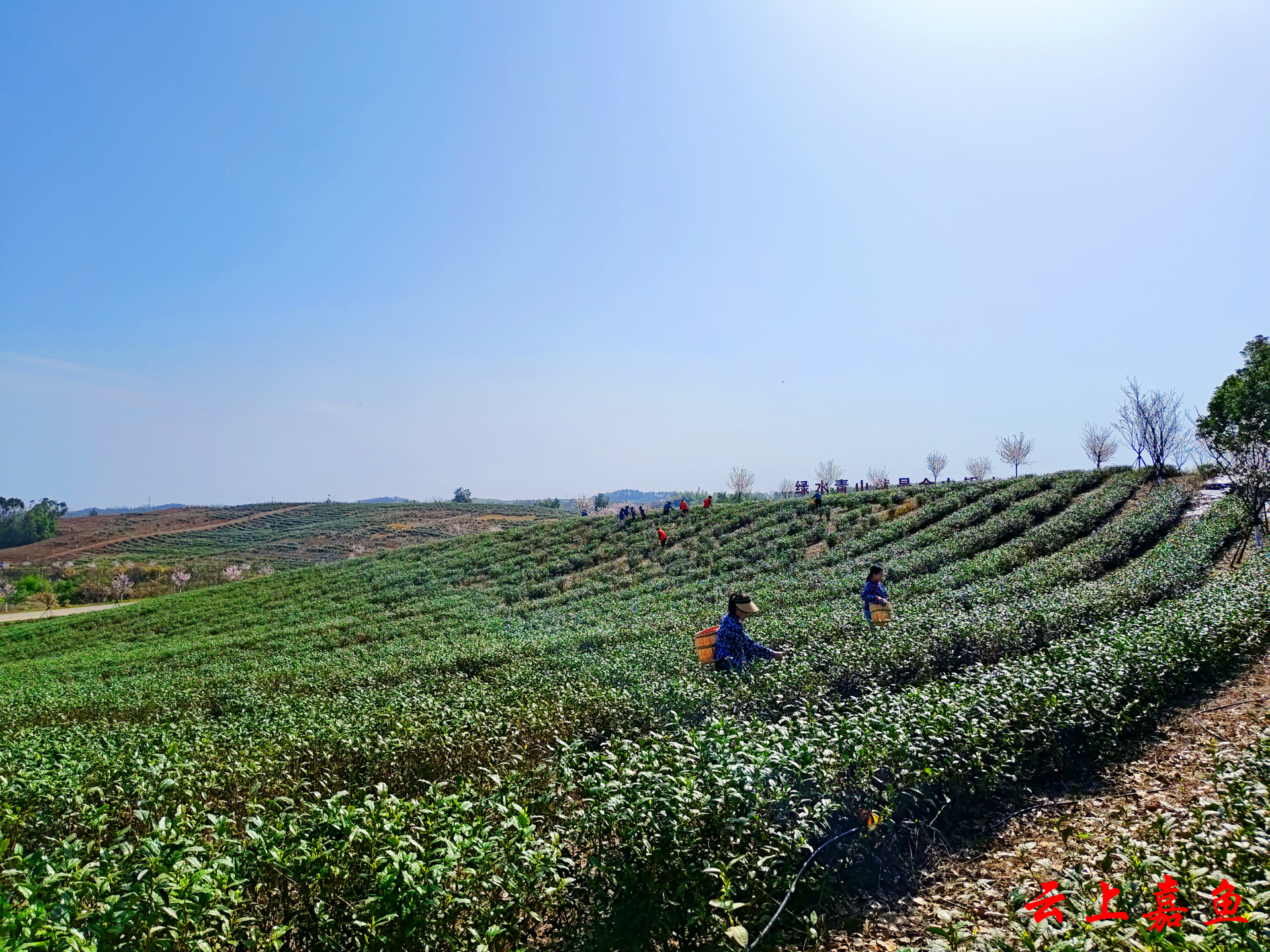 3月20日,春风和煦,嘉鱼县官桥镇朱砂村正组织茶农采收春茶。该村是集茶叶种植加工、茶坊、茶膳、住宿等于一体的“茶叶+旅游”网红打卡地。(周泽宇 摄)