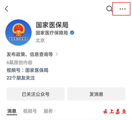 第二步:点击微信公众号主页右上角