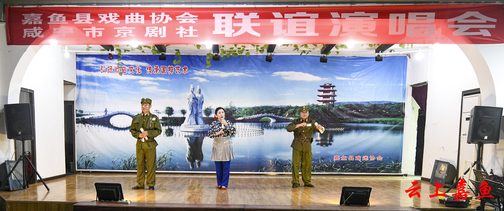 百余名来自咸宁市京剧社与嘉鱼县戏曲协会的戏迷票友齐聚一堂、切磋技艺,为传承和弘扬优秀传统文化助力。演唱会上,演员们带来了京歌合唱《没有共产党就没有新中国》、洪洋洞选段《为国家》、沙家浜选段《风声紧》、钧舍龟选段《叫张义》、杜鹃山选段《家住安源》、海港选段《大吊车》等三十多个精彩剧目。演员们的演唱字正腔圆、端庄大气,或气势如虹,或婉转悠扬,韵味十足。现场掌声、喝彩声不断。