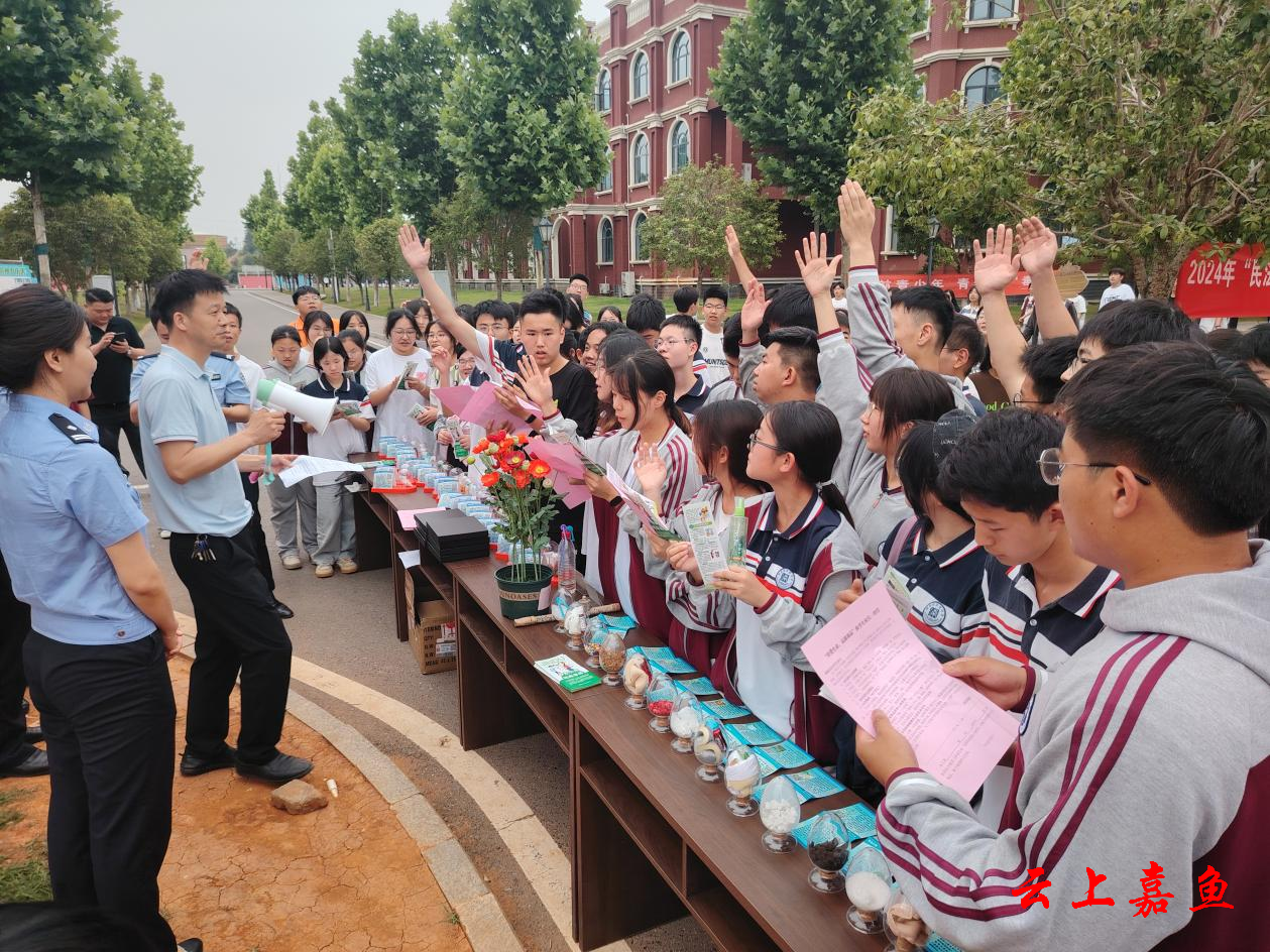 云上嘉鱼报道(通讯员熊会)为进一步加强学生对禁毒的认识,提高识毒、防毒、拒毒的能力,5月21日下午,鱼岳镇樱花社区新时代文明实践站联合湖北省未成年人强制隔离戒毒所、鱼岳镇社区戒毒康复中心,嘉鱼县公安局禁毒大队、樱花社区团委,在嘉鱼县第二中学开展2024年“民法典宣传月”禁毒普法知识宣传活动。