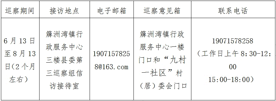 巡察组在簰洲湾镇巡察期间,具体联络方式如下: