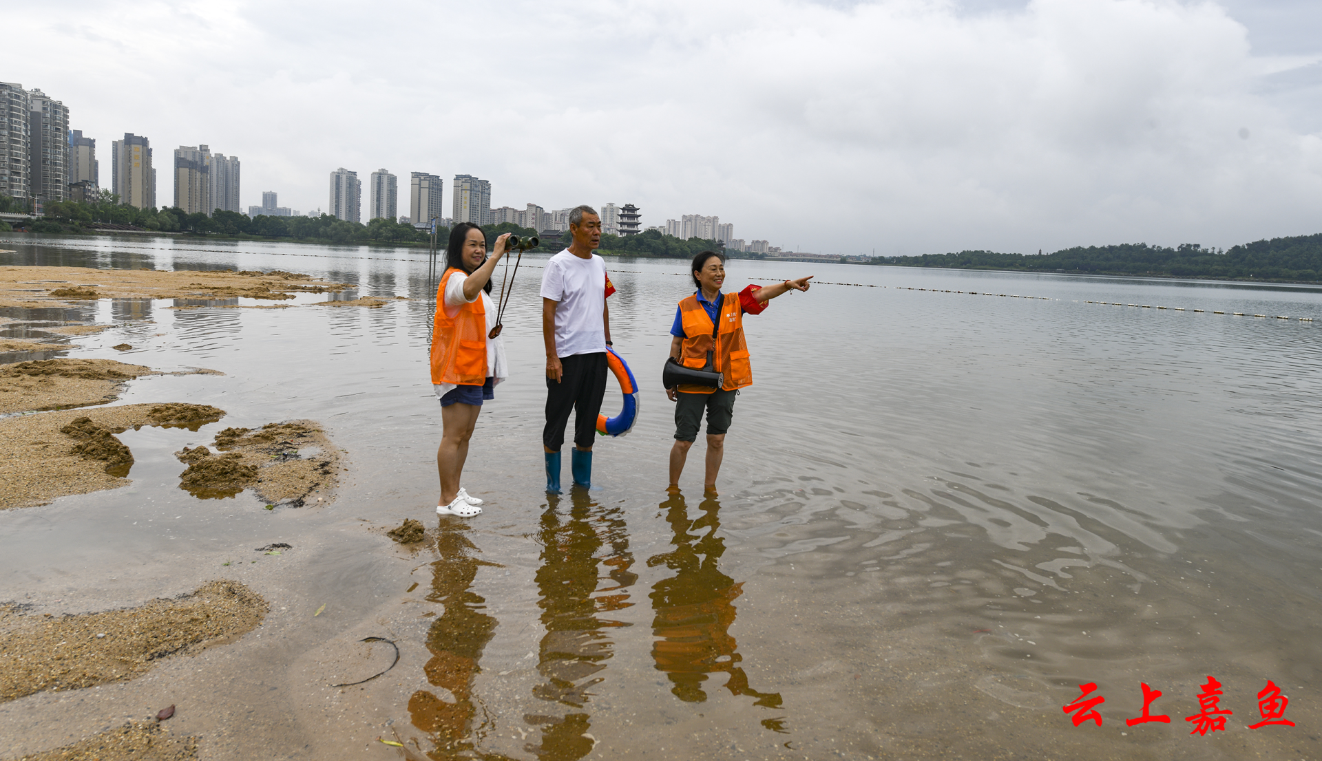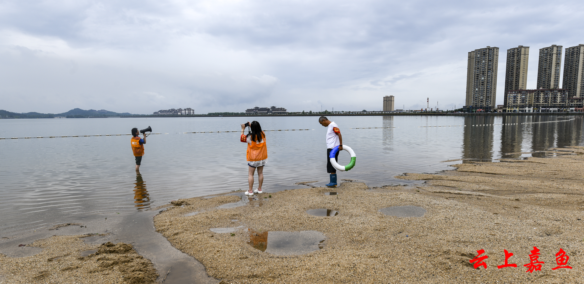 云上嘉鱼报道(全媒体记者雷平 通讯员徐永建)6月23日,嘉鱼县冬泳协会红十字水上救援服务队的志愿者们和往常一样,在三湖连江沙滩浴场开展防溺水巡查。连日的雷电暴雨天气,给值守带来困难。志愿者们依然每天分两班,从上午8时到晚上10时,坚守在防溺水岗位上,守护未成年人的生命安全。