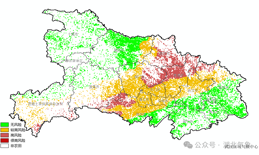 6月28日至6月29日,鄂西南南部、江汉平原、鄂东北等地势低洼农田有较高的渍涝风险,影响作物根系生长。强降水伴随大风可能导致棉花、玉米等作物出现倒伏。此外,强降水利于稻飞虱等“两迁”害虫持续迁入,可能导致迁飞性害虫偏重发生。