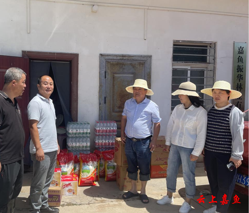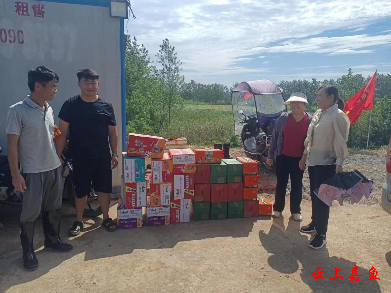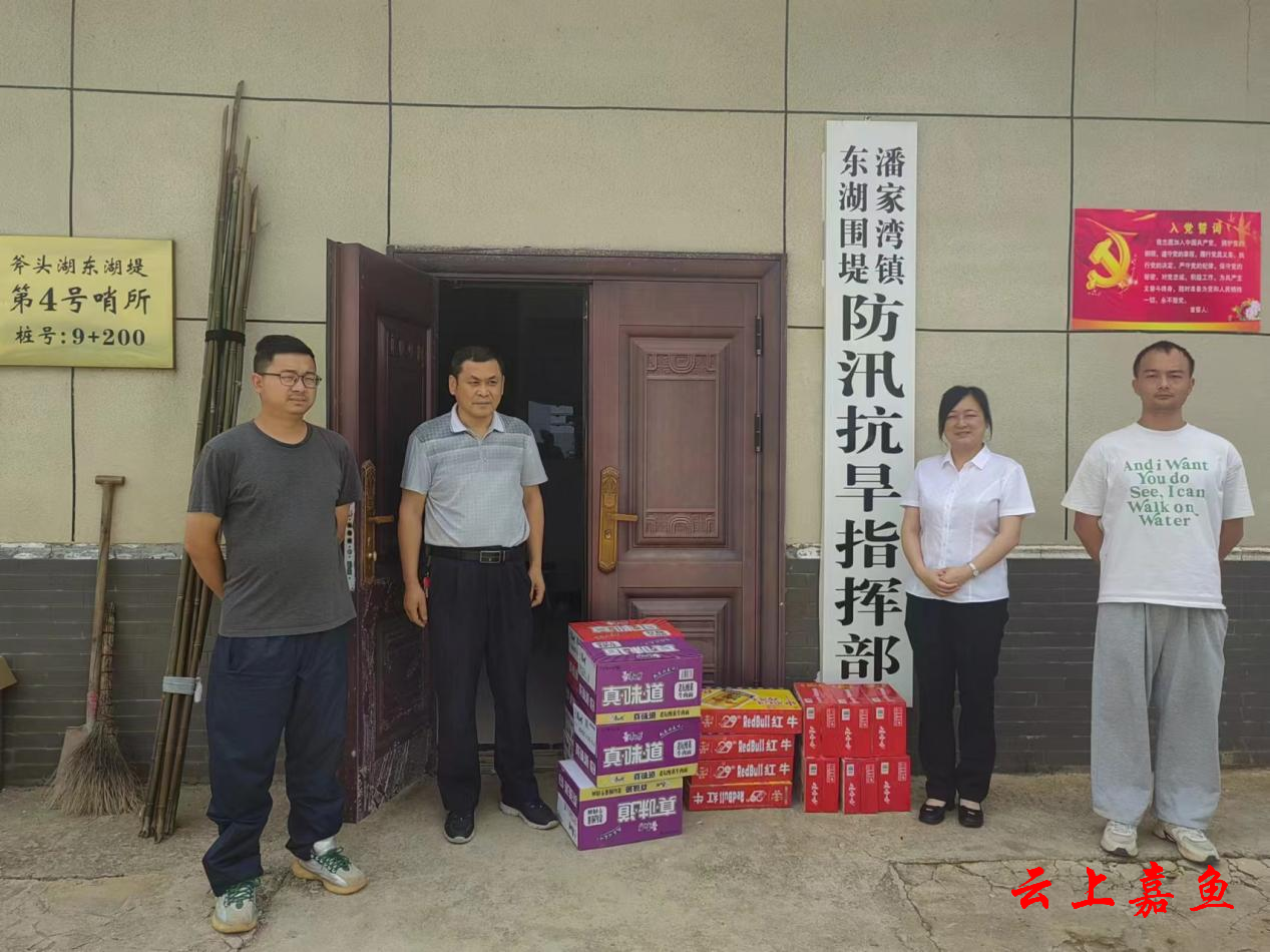 7月4日,嘉鱼银河畜牧发展有限公司一行慰问潘家湾镇复兴围堤北堤防汛指挥部。