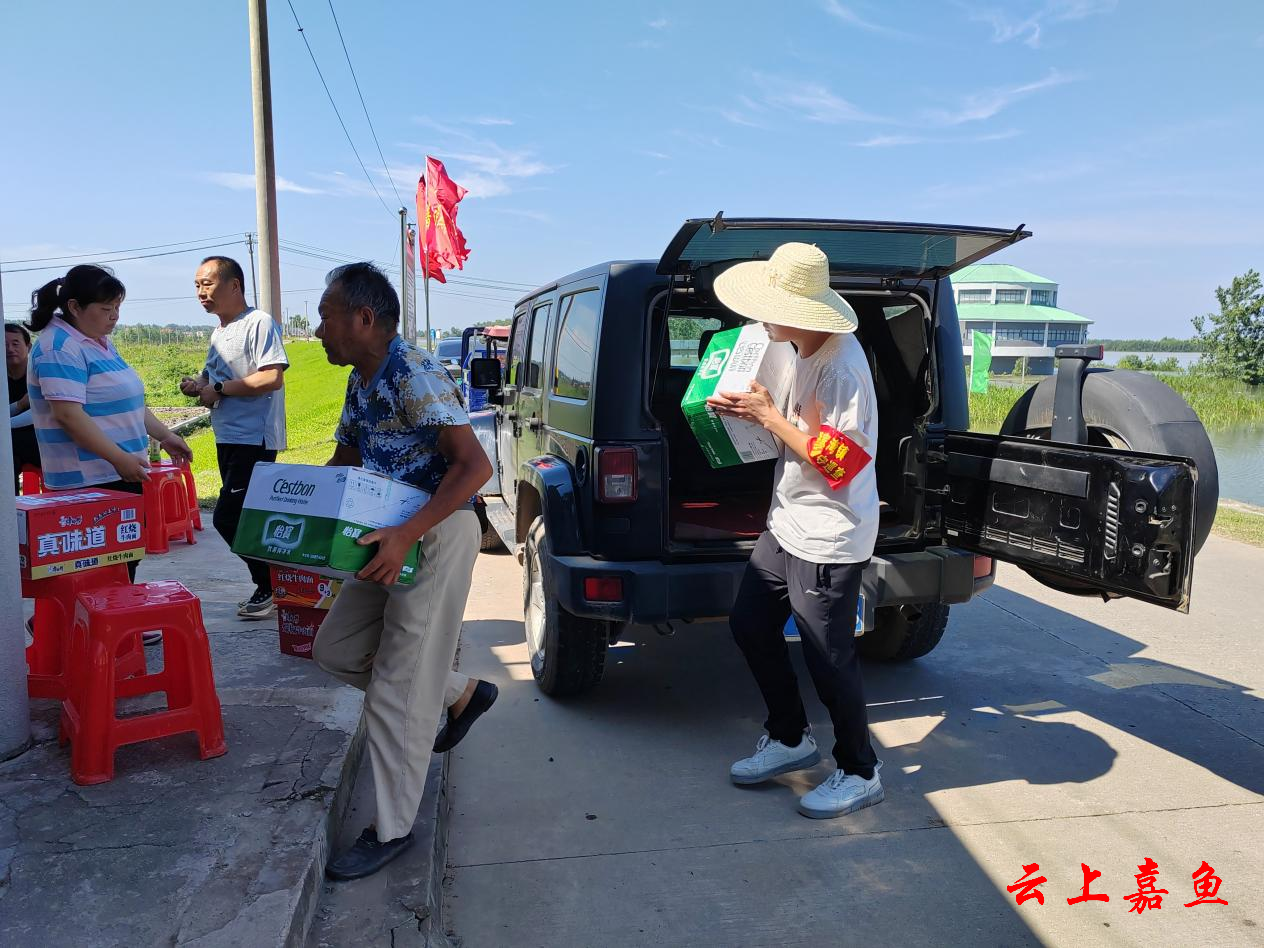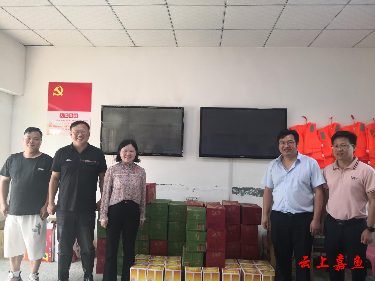 7月4日,潘家湾镇嘉红蔬菜交易中心慰问畈湖村防汛哨所工作人员。