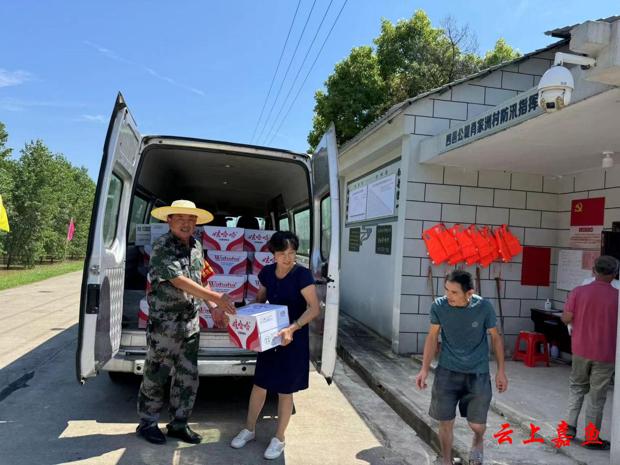 7月3日,嘉鱼县市场监督管理局慰问四邑公堤肖家洲村防汛哨所,为防汛一线人员送去饮用水、方便面等物资。