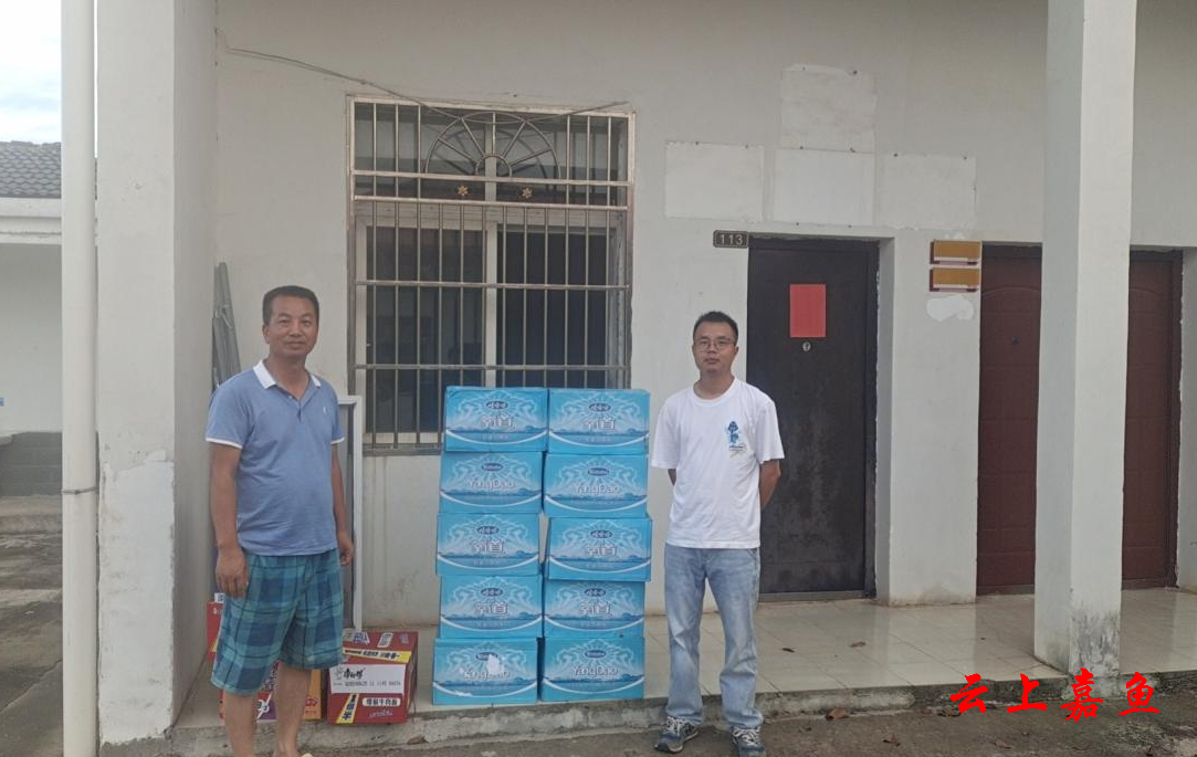 7月5日,潘家湾村乡贤杨先朗慰问潘家湾村防汛一线人员,为其送去饮用水、方便面等防汛物资。