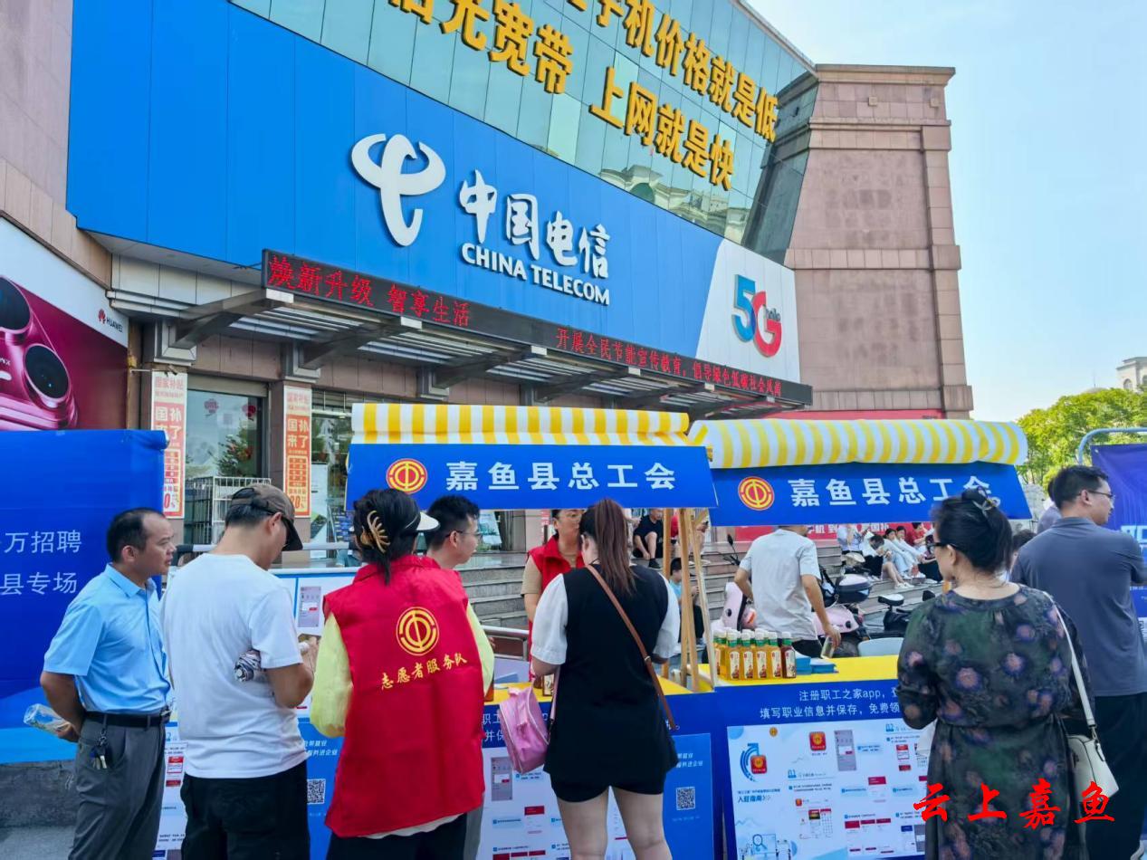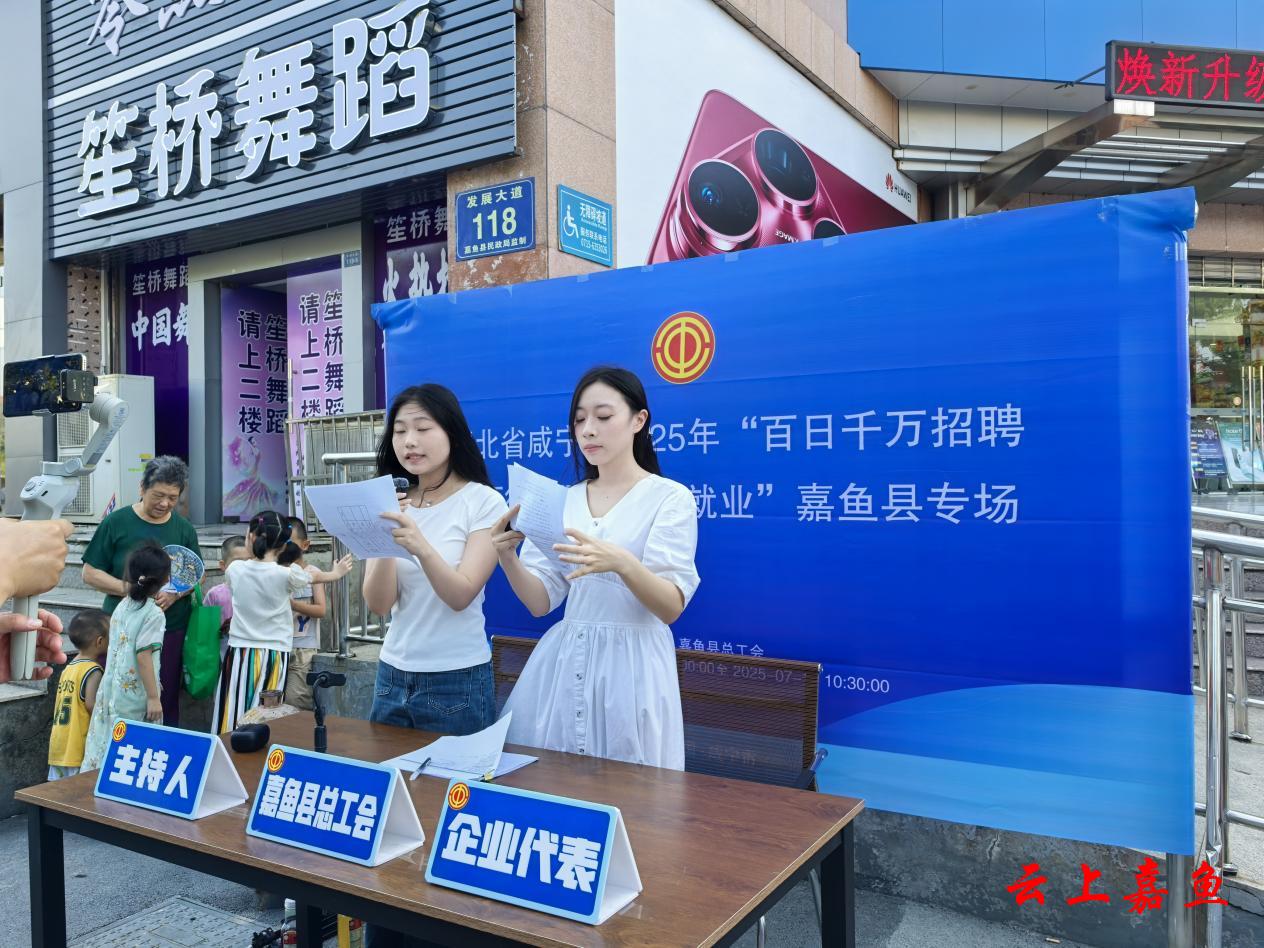 云上嘉鱼报道(全媒体记者耿海军 通讯员蔡金波 黄静)7月15日,咸宁市2025年“百日千万招聘专项行动”“工会帮就业”嘉鱼县专场直播带岗活动在县电信广场举行。