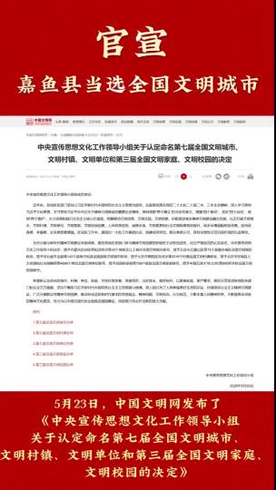嘉鱼荣膺全国文明城市市民纷纷点赞
