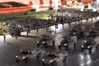 1984年国庆35周年阅兵,48辆东风军车受阅,包括两吨半越野车、三吨半越野车以及二汽生产发动机的轮式装甲。