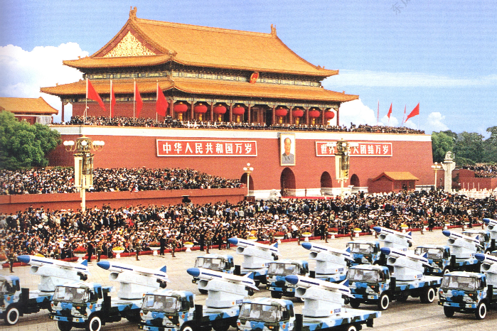 1999年国庆50周年阅兵,95辆东风车顺利通过天安门,包括64辆军车、31辆游行彩车。