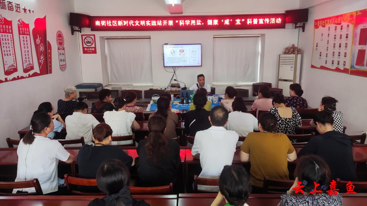 云上嘉鱼报道(全媒体记者皮道琦 通讯员王丽)9月2日,鱼岳镇南街社区新时代文明实践站联合湖北盐业集团有限公司嘉鱼分公司开展“科学用盐,健康‘咸’宜”主题科普宣传活动。